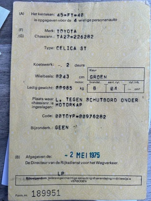 Helaas ben ik tot de conclusie moeten komen, dat ik afscheid moet gaan nemen van mijn Celica TA22 ST uit 1975. Ben jij niet bang voor een voor een restauratieprojectje, doe dan een goed bod op deze mooie 1e generatie Celica.